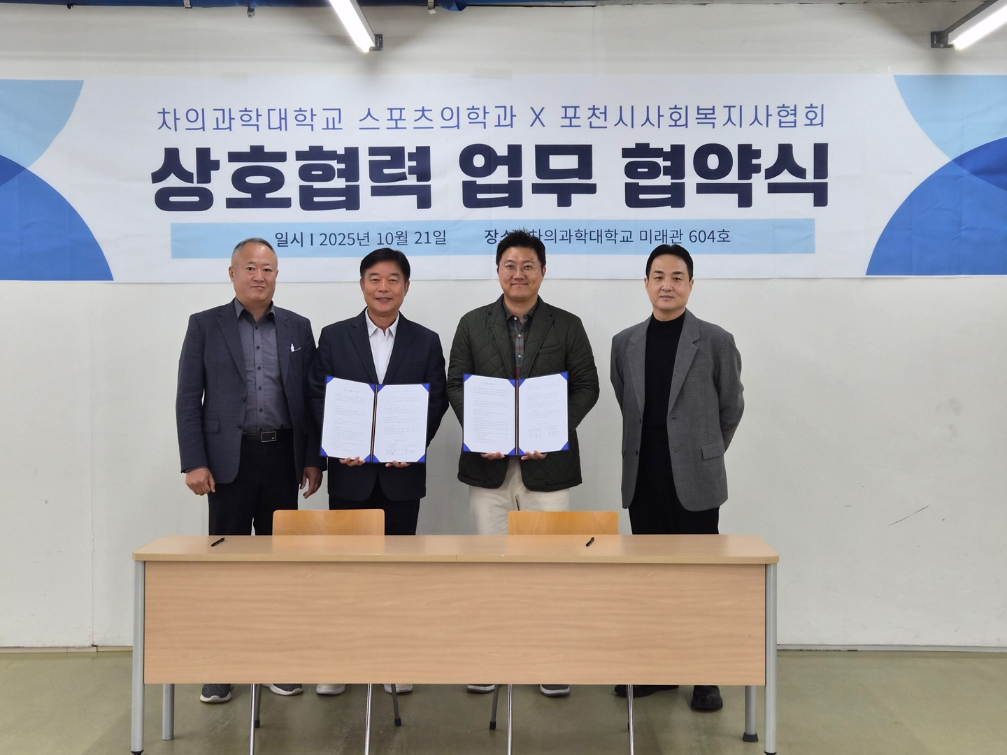 2025년 10월 21일, 스포츠의학과와 포천시사회복지사협회가 지역사회 복지 증진을 위한 업무협약을 체결했습니다.